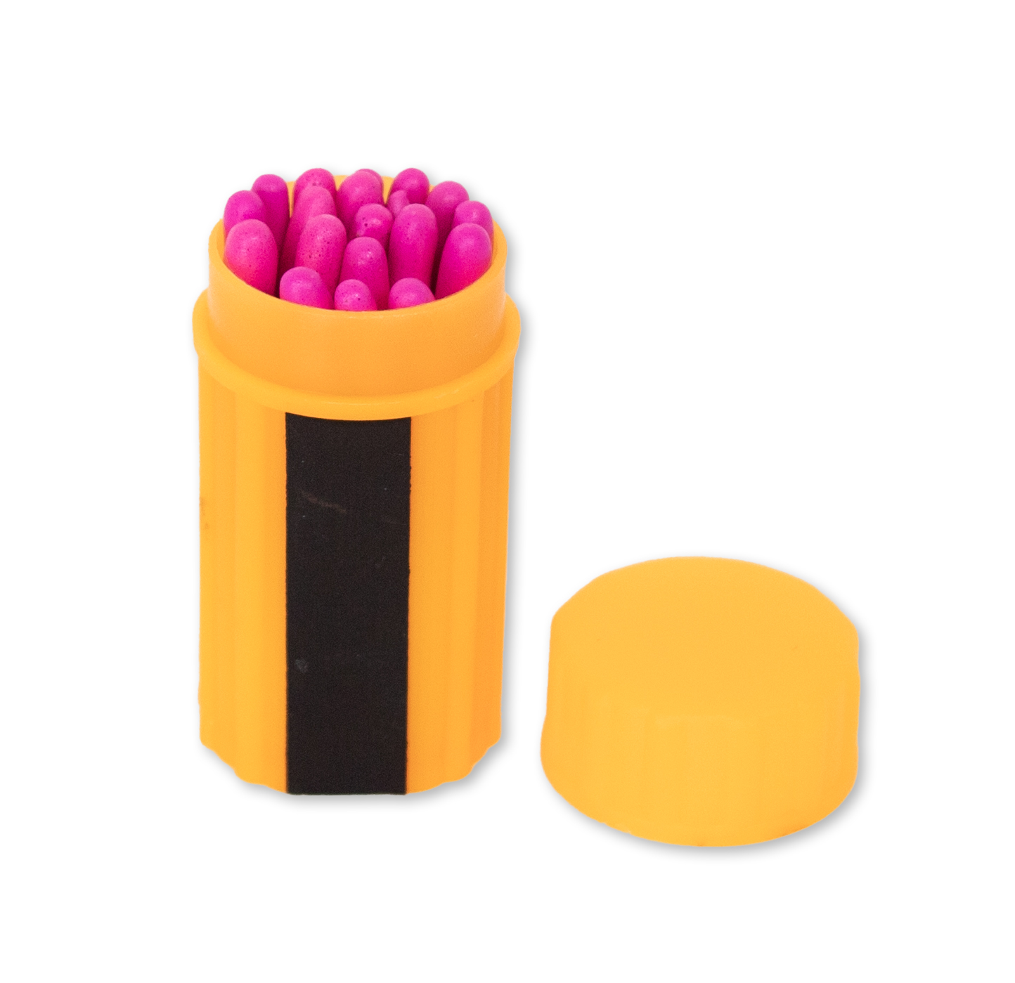 - Waterbestendige lucifers: Deze lucifers blijven branden, zelfs nadat ze nat zijn geworden. Ideaal voor extreme weersomstandigheden zoals regen en harde wind. Dankzij de grote, brandbare kop bieden ze een langere brandduur dan gewone lucifers.