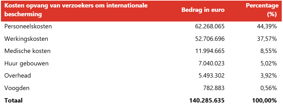 Kosten opvang van verzoekers om internationale bescherming