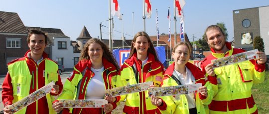 De Rode Kruissticker. Je kan er gerust om lachen, hoe we als gekken in ons fluopakje uren op kruispunten gaan staan om stickers te verkopen. Maar wat we doen met die 5 euro die jij geeft voor die sticker, is wél heel serieus.