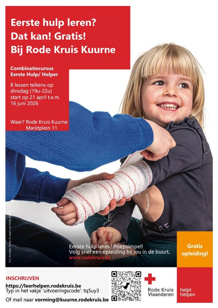 Voor extra vragen/info, stuur gerust een mailtje naar mailto://vorming@kuurne.rodekruis.be.