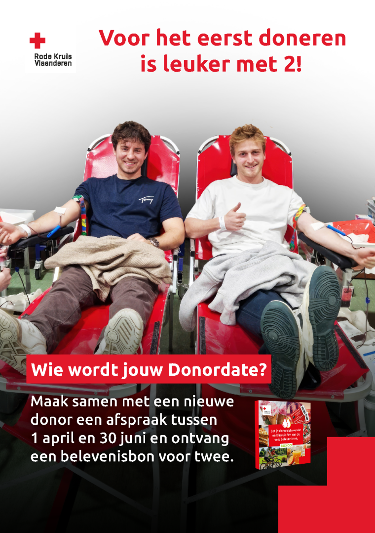 Tussen 1 april en 30 juni 2026 is het weer tijd voor de donordate. Dat betekent dat je in mei in Zomergem en Oostwinkel en Lovendegem kan komen bloedgeven als donordate. Bij de bloedgiften in januari en februari in Zomergem delen we flyers uit, en ook in Lovendegem, met uitleg. Als je meedoet krijg je een belevenisbon voor alle twee. Wat moet je doen en hoe werkt het?