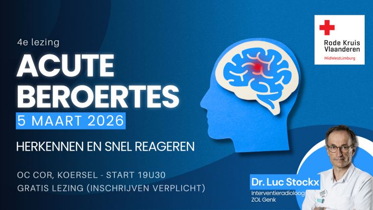 Op donderdag 5 maart 2026 om 19:30 uur verwelkomen we alle geïnteresseerden (inschrijven verplicht) in Ontmoetingscentrum COR Koersel voor een lezing door dr. Luc Stockx met als titel "Acute beroertes: herkennen en snel reageren".