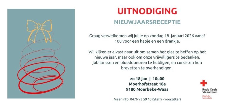 Deze zal plaatsvinden op zondag 18 januari 2026 vanaf 10u in ons Rode Kruisgebouw (Moerhofstraat 18a te Moerbeke).