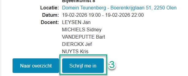 - Je krijgt een pagina met alle details; onderaan klik je op de "Schrijf me in" knop..