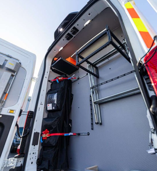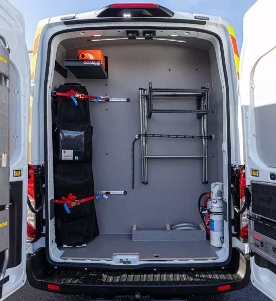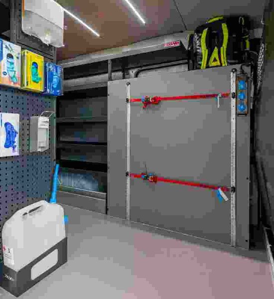 De ombouw van onze nieuwe interventiewagen aangekocht bij unicars , Oostende , werd gerealiseerd bij Moduvan Kortemark ...