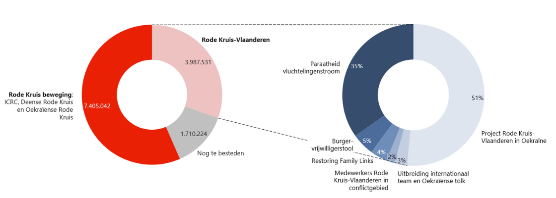 Daarnaast heeft Rode Kruis-Vlaanderen reeds € 13.207.011 ingezameld om de humanitaire hulpverlening in Oekraïne zelf te ondersteunen. De fondsen werden ingezet om noodhulpgoederen, personeel en financiële steun te bieden. Er werden in het totaal 61 generatoren aangekocht en verscheept naar Oekraïne, om de stroomvoorziening voor kritieke infrastructuur (ziekenhuizen en watervoorzienings-maatschappijen) te verzekeren. Daarnaast werden twee ervaren personeelsleden uitgezonden naar West-Oekraïne, om de lokale afdelingen van het Oekraïense Rode Kruis in de regio’s Rivne en Volyn te helpen.