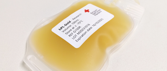 Human Platelet Lysate (hPL) is een oplossing die wordt verkregen door het lyseren van menselijke bloedplaatjes. Het bevat een rijke mix van groeifactoren, cytokines en andere bioactieve moleculen die celgroei, regeneratie en weefselherstel stimuleren. Daardoor is het dus uitermate geschikt als xeno-vrij supplement voor (stam)celkweek bij o.a. productie van celtherapie. Door de ontwikkeling van ons hPL Gold kan het Rode Kruis-Vlaanderen alle donaties optimaal benutten en daarbij een extra bijdrage leveren aan verbeterde patiëntenzorg.